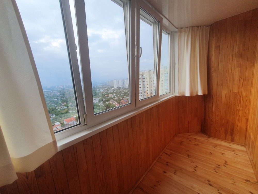 - балкон зі скляними вікнами на весь периметр та обшитий дерев'яною вагонкою