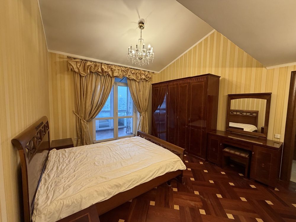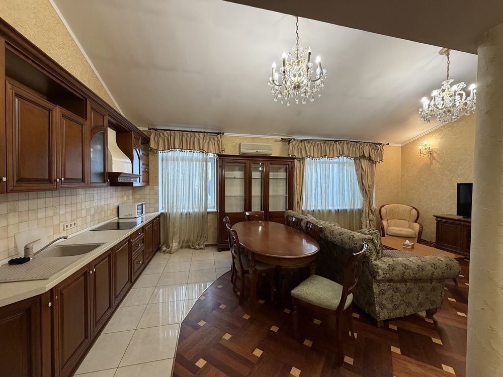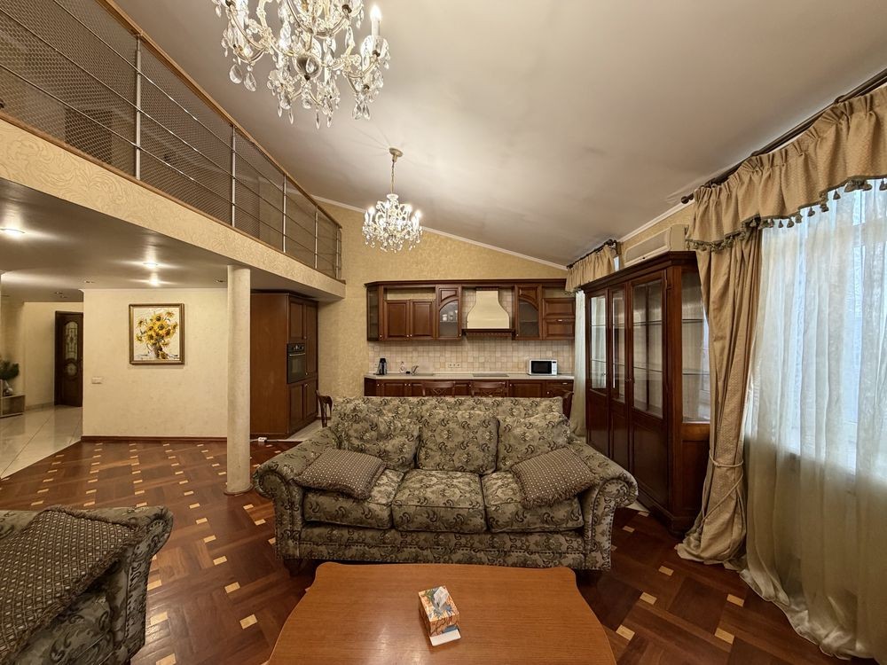 Пропонується в довгострокову оренду простора дворівнева чотирикімнатна квартира у престижному Печерському районі Києва.