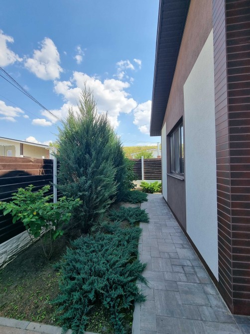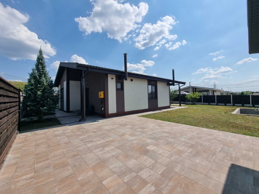 Будинок площею 86 м.кв. розташований на ділянці 5,5 сотих,заведена електрика 20 кВт газ, вода-свердловина, зливна яма. На ділянці збудоване хоз приміщення для зберігання, парковка на 2-3 авто та терраса з доріжками з бетонною основою, зроблена чаша басейну (приямок та окрема зливна яма згідно об'єму басейну), фруктовий молодий сад, озеленення.