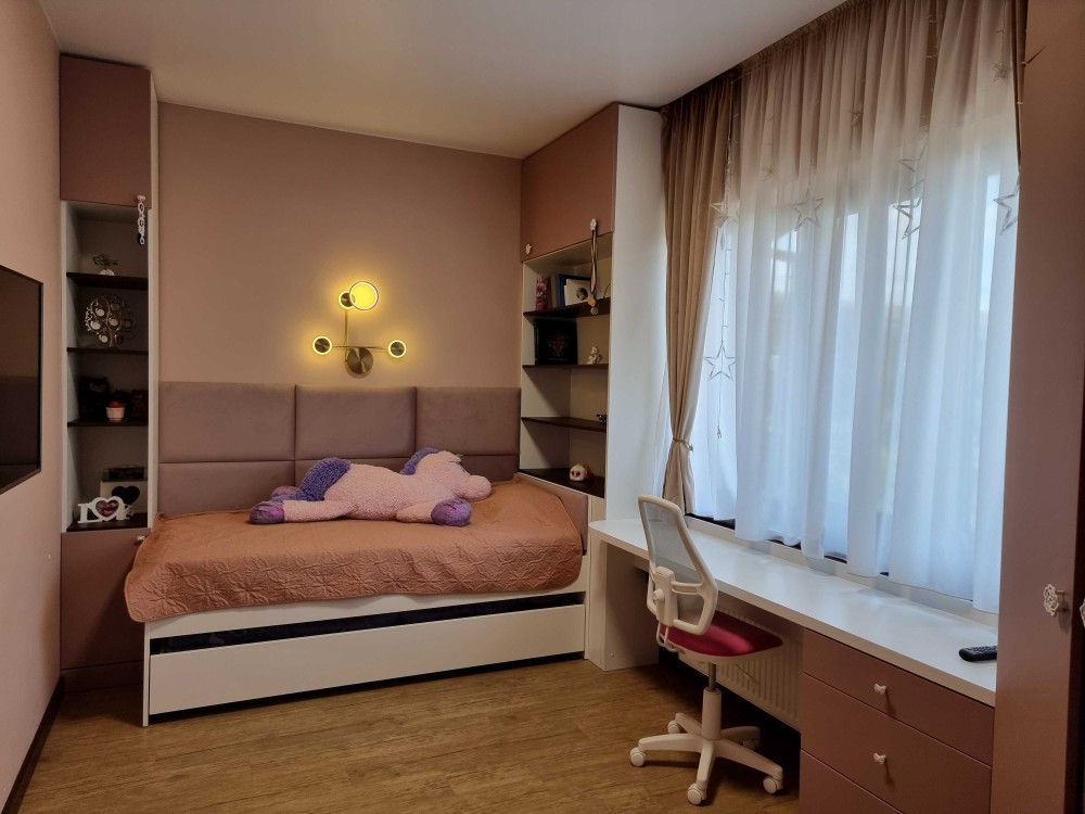 Будинок: 86 м.кв. : 3 спальні ( 16+12+12) ,кухня-їдальня, санвузол, топкова, терраса. Опалення 2 контурний газовий котел, тепла підлога ( водяний контур) та радіатори. На площі 86 м.кв. виконане оптимальне дизайнерське рішення з розміщення меблів та техніки для родини з 3-4 осіб, всі меблі виготовлені під замовлення. Краще заїхати й подивитися особисто!