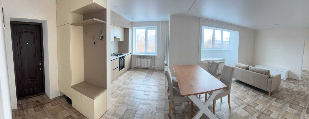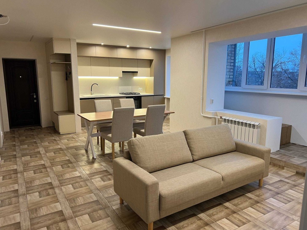 Чотири окремі кімнати, прохідна велика вітальня об'єднана з кухнею в студію, дві великі лоджії, розділені між собою для відокремлення особистого простору, утеплені зовні і зсередини. Закладено основу під майбутній кондиціонер. Нові вхідні двері, здійснена повна заміна проводки, сформовано розподільний щиток. Робили як для себе, в квартирі мінялось все, збивались стіни до цегли, професійна машинна стяжка стін, шпаклівка, поклейка шпалер, зривалась підлога, стяжка підлоги, вкладення плитки, натяжна стеля, закладки під штори по кімнатам на стелі, вже встановлено освітлення, розетки, вимикачі, замінені радіатори опалення, замінений вхід в каналізацію, вже встановлено інсталяцію, бойлер, ванну. Дзеркало з LED підсвіткою, раковина і рушникосушар вже на своіх місцях. Повністю укомплектована кухня, з варочною поверхнею, холодильником, духовою шафою та посудомийною машиною. Вся техніка в квартирі залишається новому власнику. Вікна та лоджії засклені найкращим енергозберігаючим варіантом з лінійки вибору вікон VEKA. Міжкімнатні двері зроблені на замовлення з деревини суцільного ясена. В 200 метрах Сільпо, навпроти будинку дитсадочок, поруч дві школи, в 300 метрах центральний парк, стадіон, спортшкола, дві зупинки транспорту на Київ. Договір без комісії. Станом на 01.03.26 комунальні сплачені, ніхто не зареєстрований.