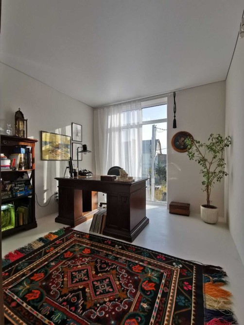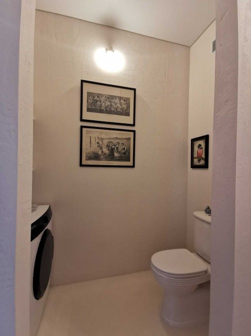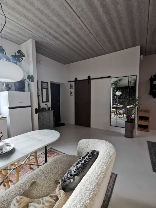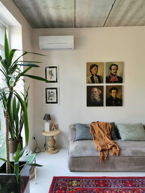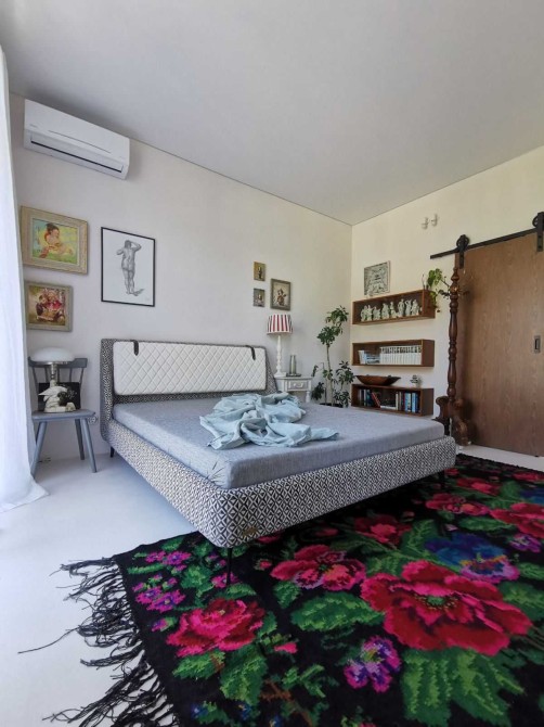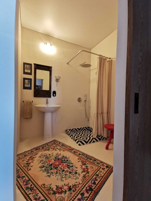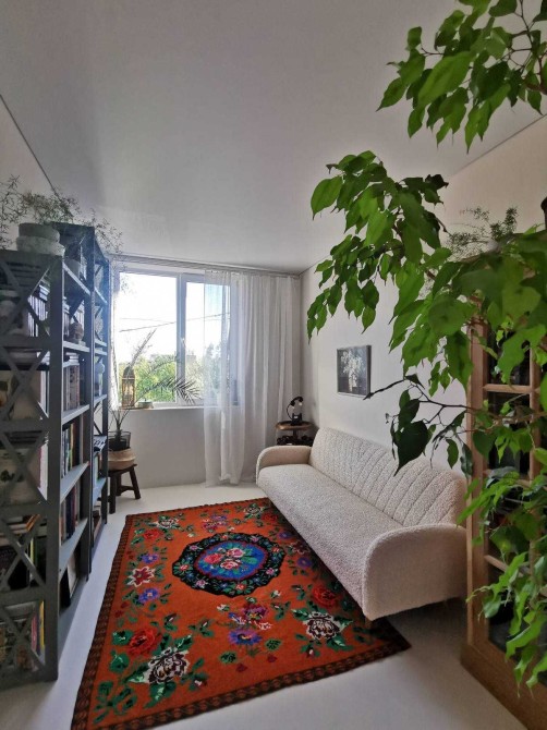 Всі внутрішні двері дерев’яні (шпон горіха) на лофт-системах з доводчиками, антикварні та вінтажні меблі ручної роботи, інверторні кондиціонери та пральна машина, іспанська сантехніка, керамічні вимикачи та розетки в ретро-стилі, телевізор Samsung The Frame65 (у вимнкненому стані екран відтворює картину), дубова стільниця, керамічна кухонна мийка, вінтажні та сучасні світильники ручної роботи, великі кімнатні рослини та ще багато інших унікальних рішень.