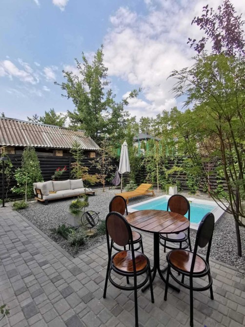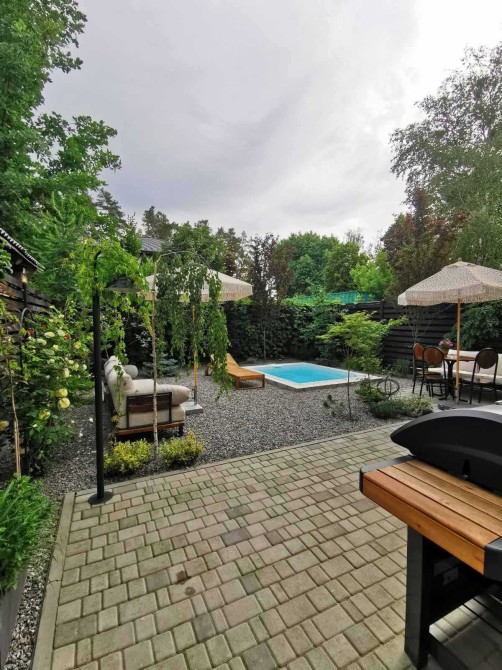 Облаштовані декілька окремих зон відпочинку, включаючи стаціонарний відкритий басейн глибиною 1.5 м з системою фільтрації, підігріву води та різнокольоровою LED підсвіткою, яким зручно користуватися з квітня-травня по жовтень, та легко самостійно доглядати.