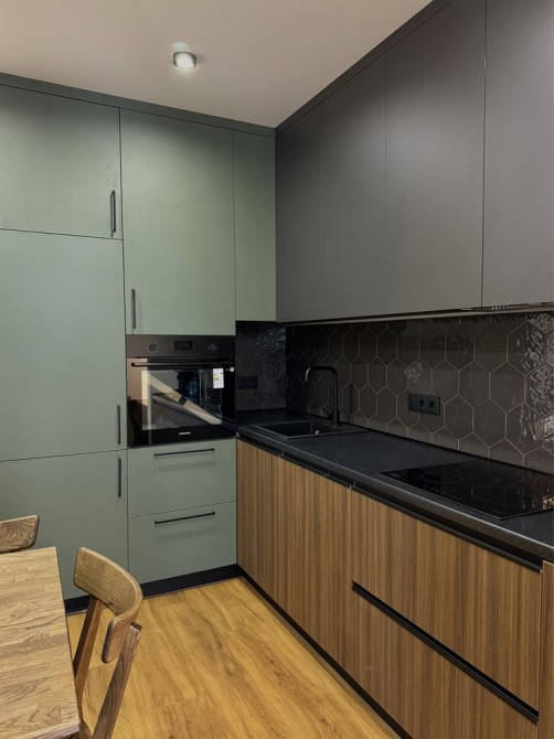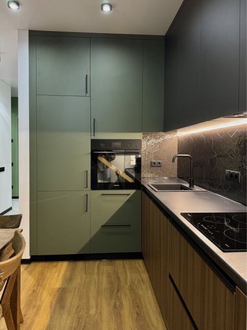 • кухня з вбудованою духовкою, мікрохвильовою піччю та посудомийною машиною.