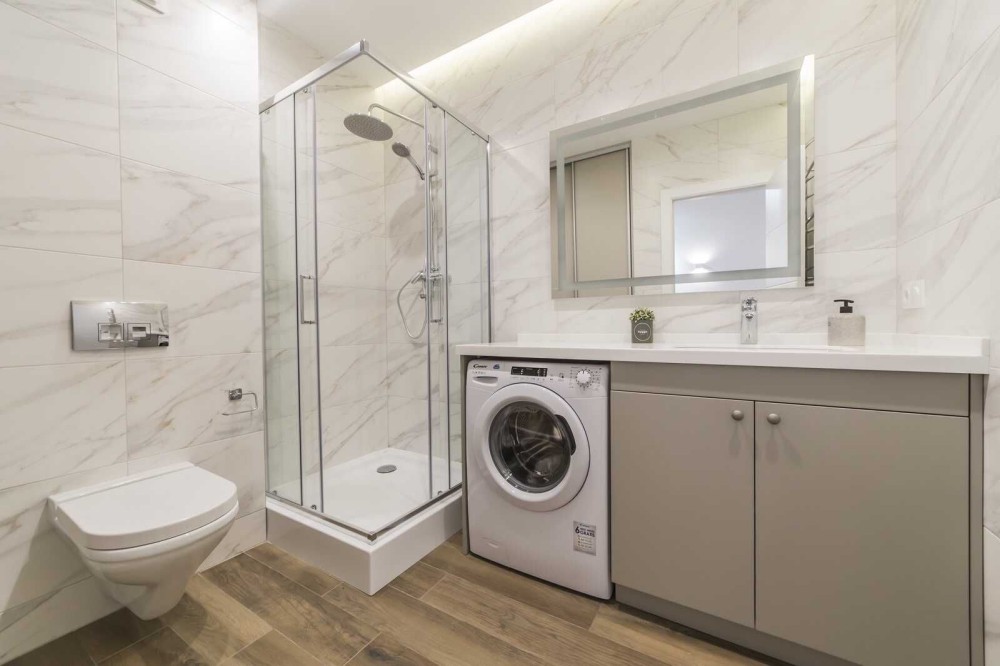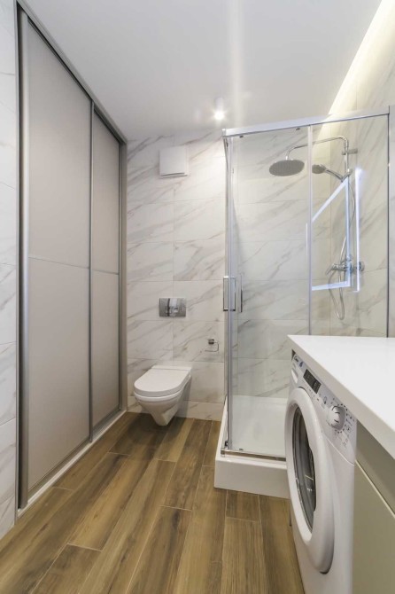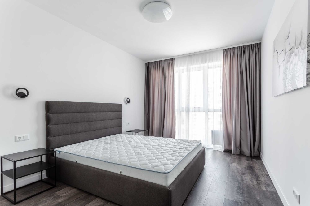 ​Велике двоспальне ліжко з ортопедичним матрацом, містка шафа-купе та продумане зонування світла. ​Сучасна душова кабіна, якісна сантехніка.