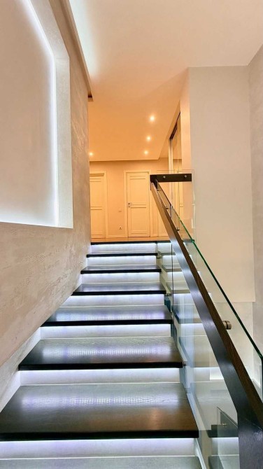 Квартира розташована на 24–25 поверхах та має чудовий панорамний вид на місто, що створює особливу атмосферу простору та комфорту.