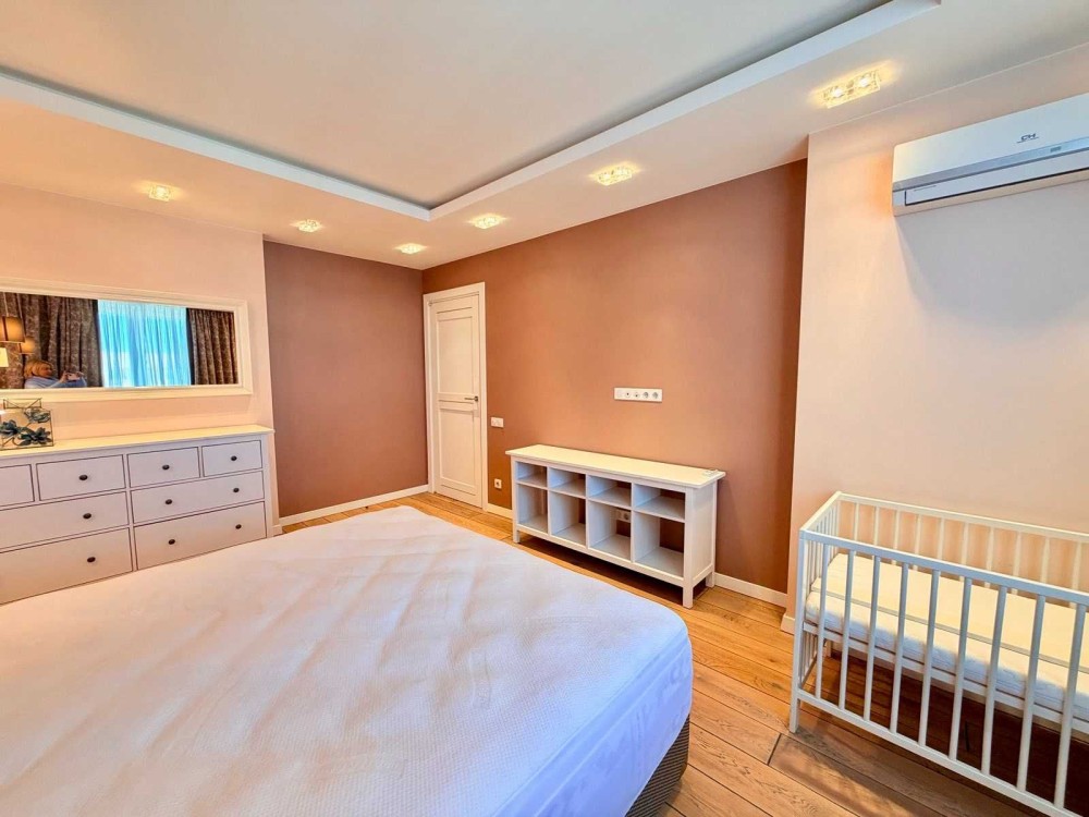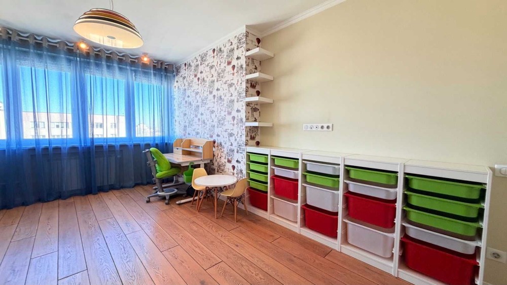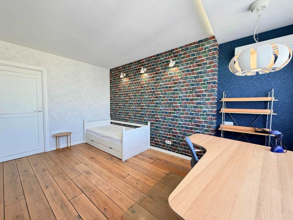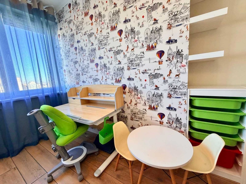 У квартирі виконаний якісний сучасний ремонт, використані меблі та побутова техніка відомих європейських брендів. Інтер’єр продуманий для комфортного проживання сім’ї.
