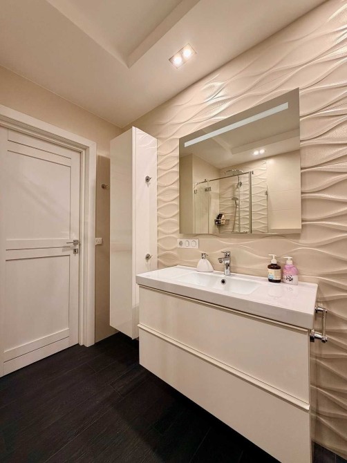 великий санвузол з ванною та душовою кабіною ,є підігрів підлоги