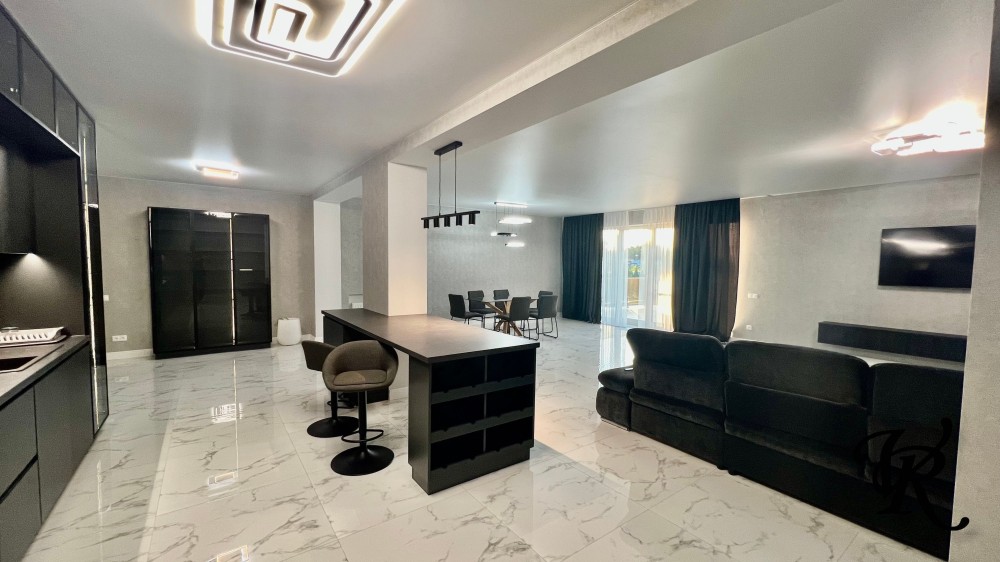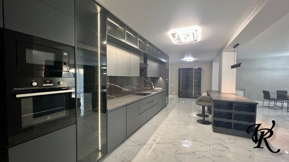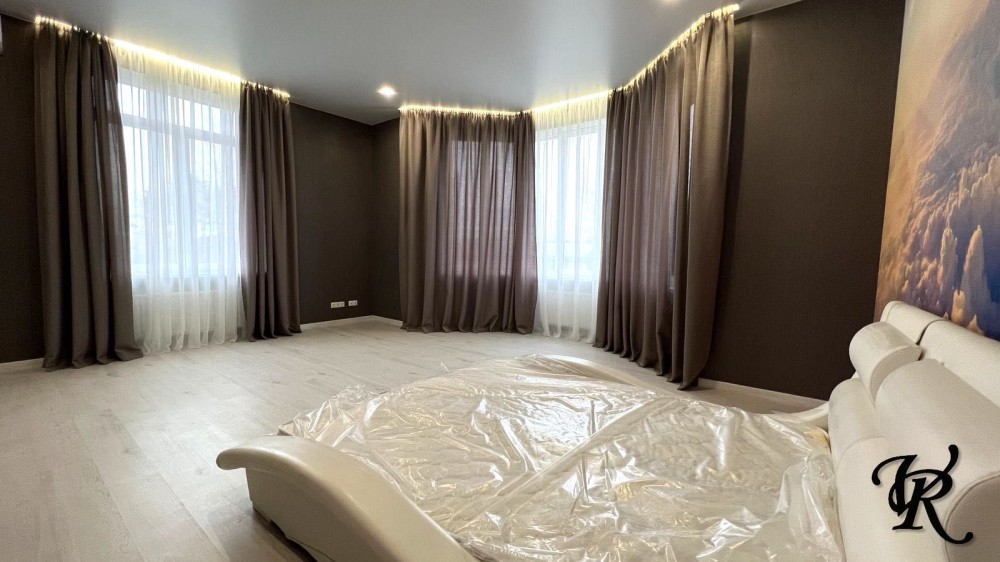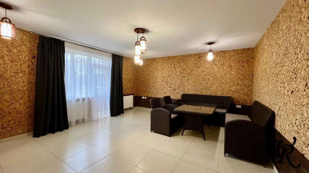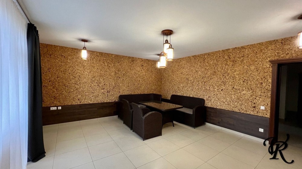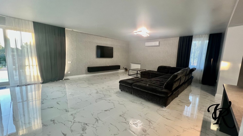 Загальна площа – 500 м². У будинку 4 просторі спальні, кабінет, велика кухня-вітальня (65 м²), 3 санвузли, пральня, гардеробні та сауна.