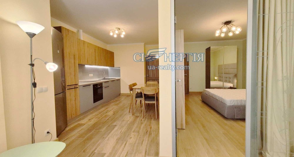 Кухня і кімната окремі, але з просторої кухні можна дістатись кімнати в тому числі і через великий світлий еркер. Квартира повністю мебльована та обладнана всією необхідною технікою: великим 2-камерним холодильником, посудомийною та пральною машинами, варильною поверхнею, духовою шафою і т.п. За комфортний мікроклімат відповідають тихий та потужний кондиціонер «Mitsubishi» та підігрів підлоги. Система очищення води «зворотній осмос» забезпечує мешканців чудовою чистою водою.