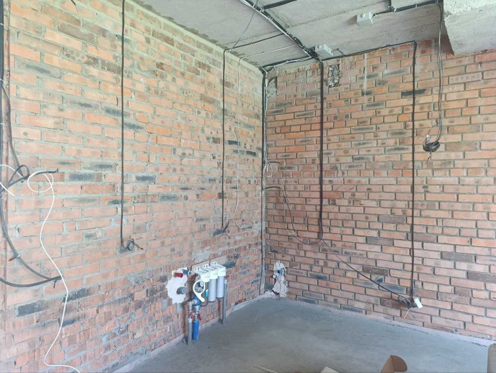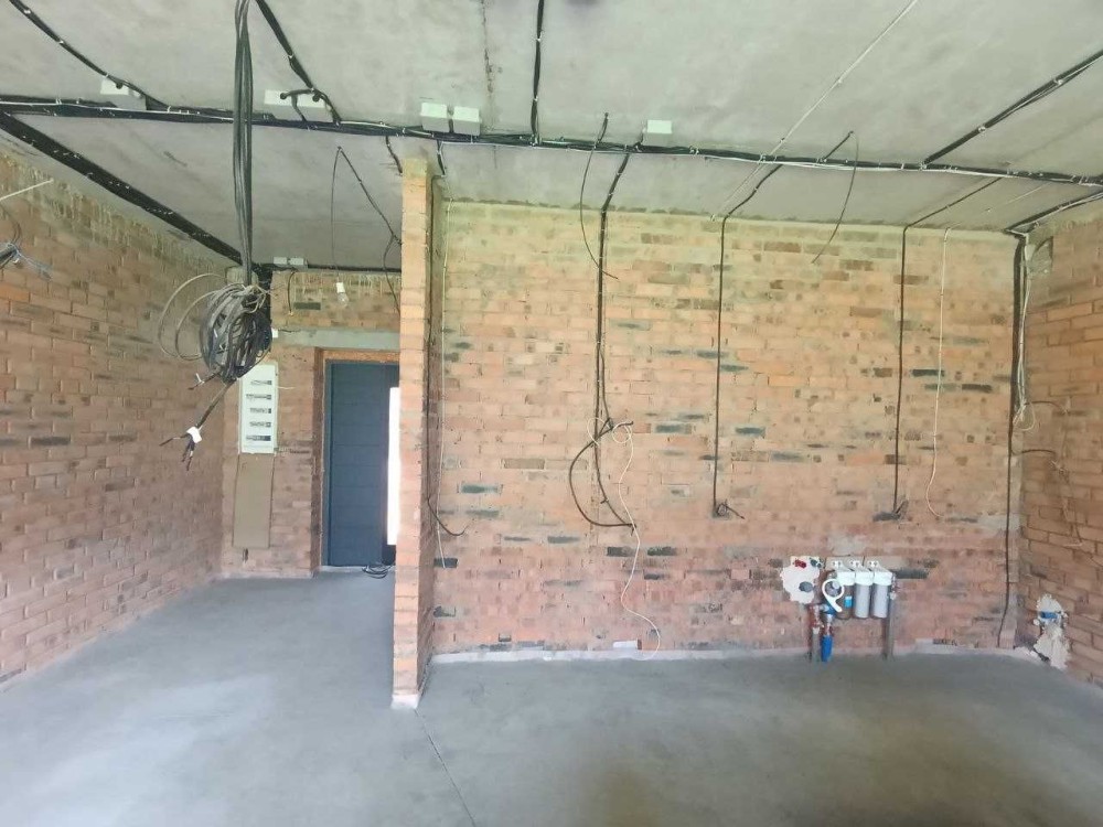 розпочато ремонтні роботи — все робилось для себе, на підлозі стяжка, повністю розведено труби, опалення, електрику, покладено теплу підлогу, встановлено фільтри води, виводи під сантехніку та кондиціонери, закуплена плитка для теплої підлоги, є бетонні сходи, панорамні вікна на задній двір, опалення — індивідуальне газове;