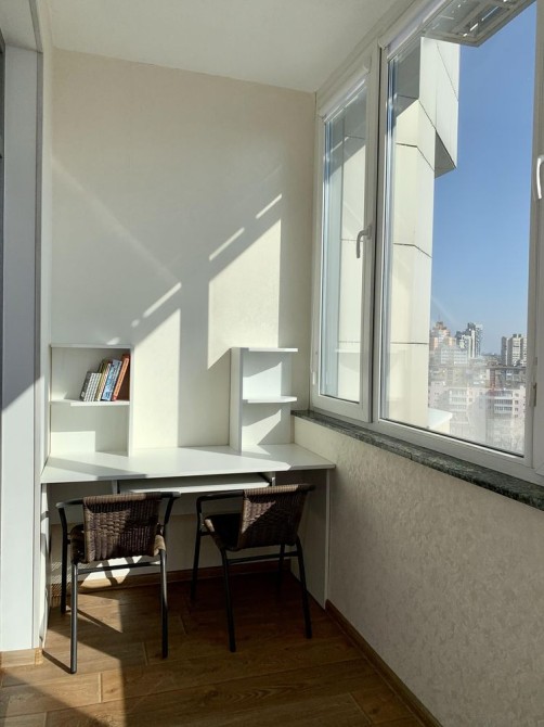Квартира світла, із просторим інтерєром, має функціональне планування. Зонована кімната з розкладним диваном і двоспальним ліжком. Дві лождії: одна з робочим столом, де можна працювати, друга де можна насолоджуватися кавою та світанком.