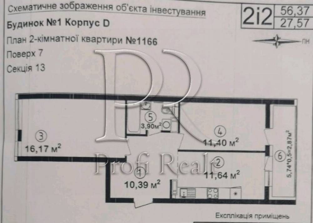 • Общая площадь 56 м2
