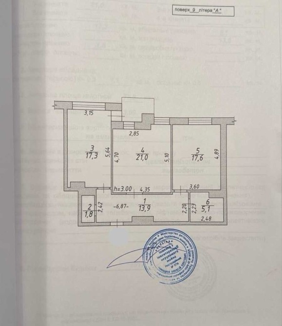 Дві окремі кімнати площею 21 м² і 17, 6 м²
