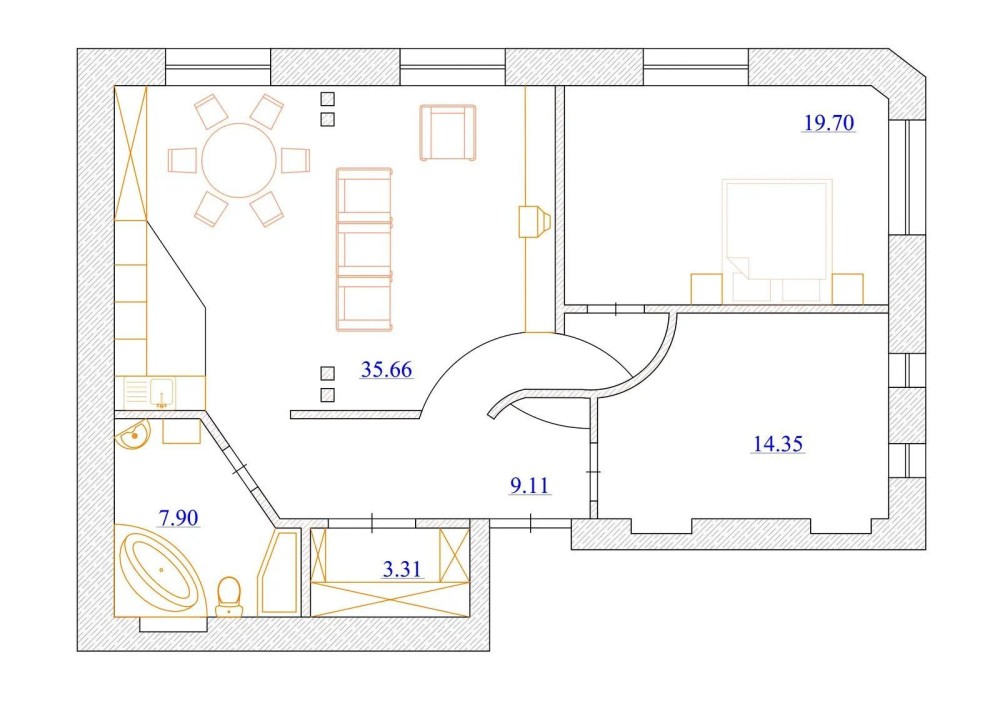 Всі стіни в квартирі не несучі, що дає можливість легко змінити планування під власні потреби.