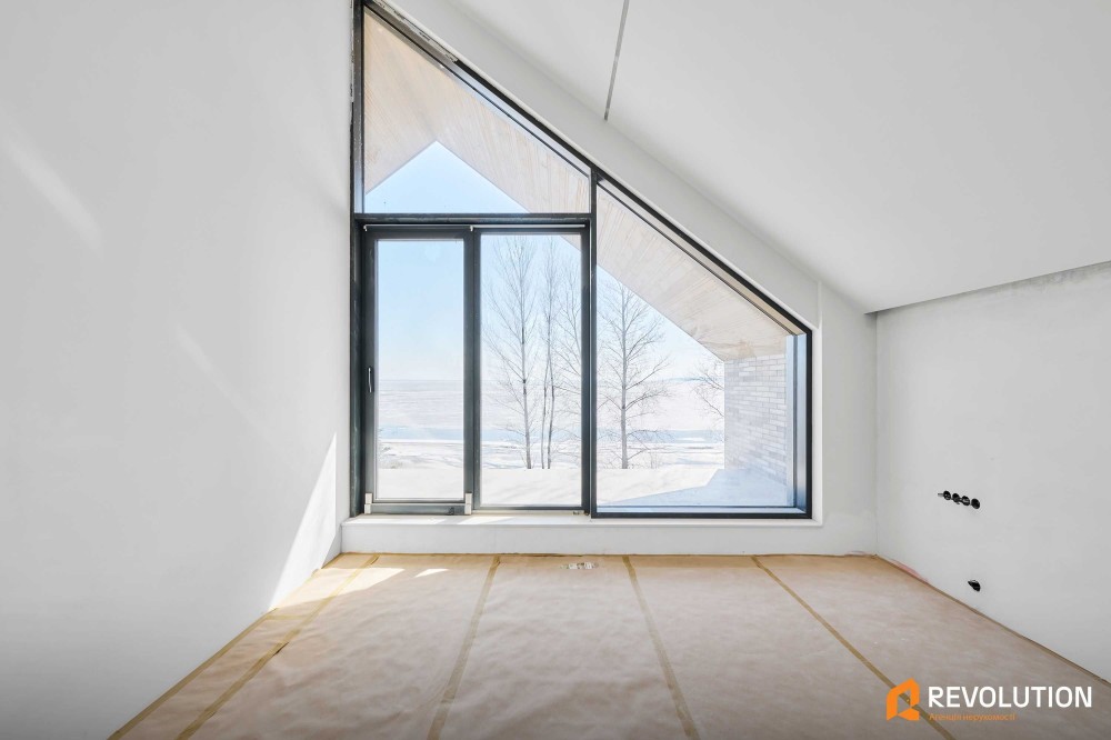Пропонується новий будинок з дизайнерським ремонтом “під ключ”, розташований у винятковій локації — на першій лінії Київського водосховища, у с. Лютіж.