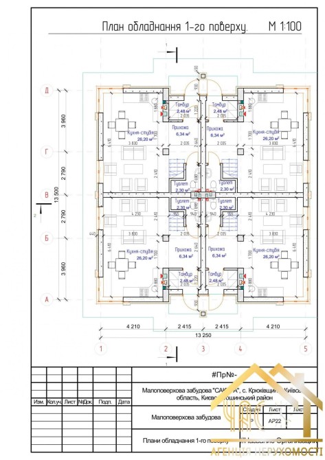 Технічна характеристика: -Планування 1-го поверху: кухня-вітальня 26 м², санвузол, гардеробна при вході