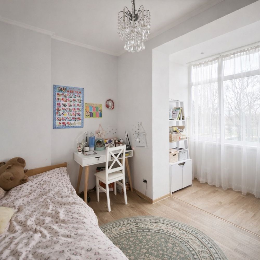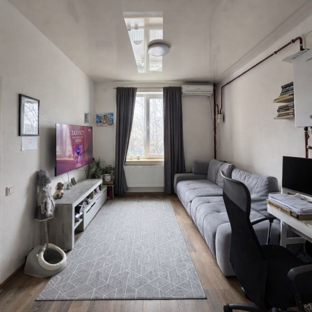 Продається велика квартира з двома окремими кімнатами і кухня-студія. Індивідуальне газове опалення. Закрита територія. В пішій доступності зупинка на автобус 379 який прямує до метро Академмістечко.