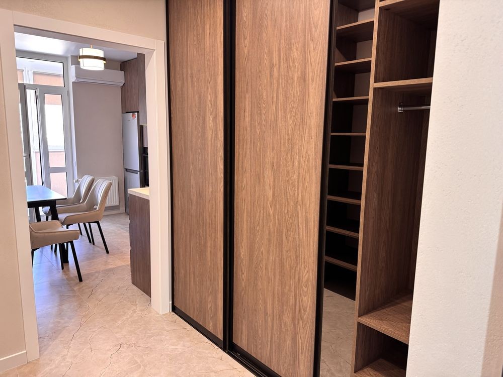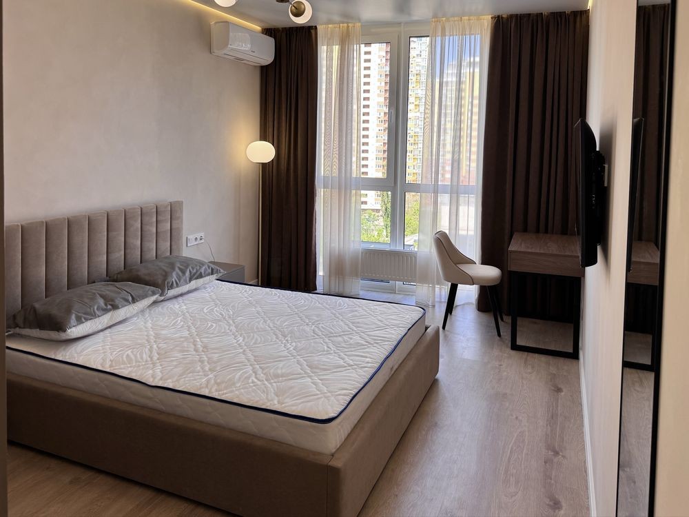 Планування: простора спальня, кухня з балконом, суміжний санвузол, гардеробна, коридор. Ремонт новий, виконаний з якісних сучасних матеріалів.