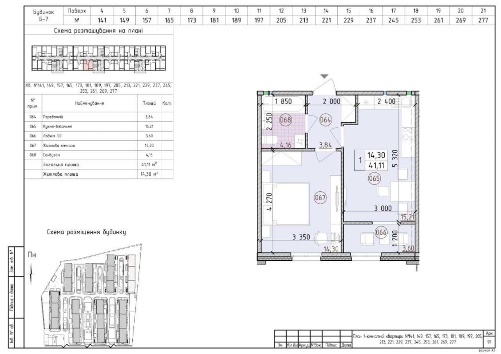 • Общая площадь 41.11 м2