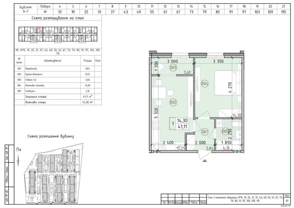 • Общая площадь 41.11 м2