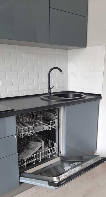 Укомплектована всіма необхідними меблями та технікою. Є холодильник, індукційна плита, посудомийна машина, пральна машина.