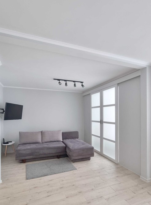 Спальня відокремлена від вітальні розсувними дверима.