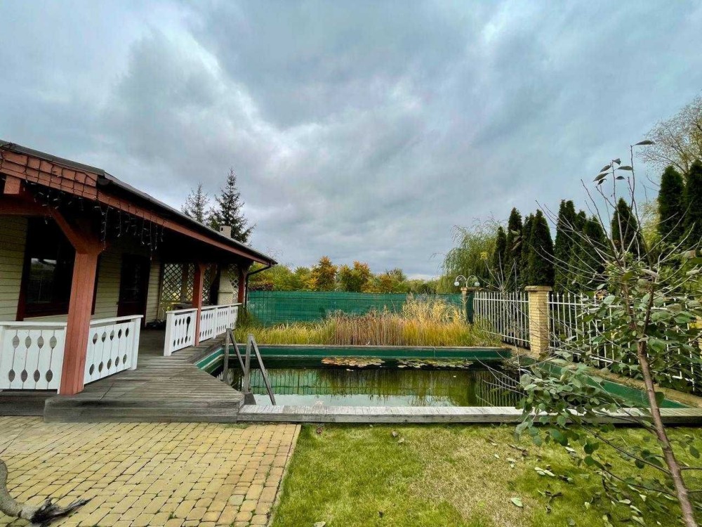 На ділянці 13 соток розташований окремо гостьовий будинок з сауною, міні-купель, ландшафтний дизайн, автополив газону, дизельний генератор на 25кВт, плодові дерева, та прямий вихід до води.