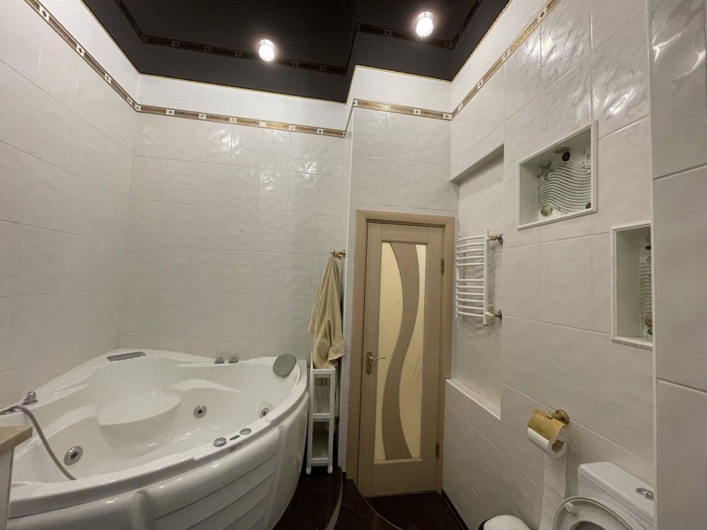 С/у 9м с гидромассажной ванной,подогревом пола и с выходом на балкон. Еще один большой застекленный балкон.