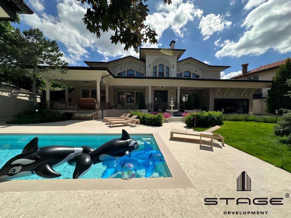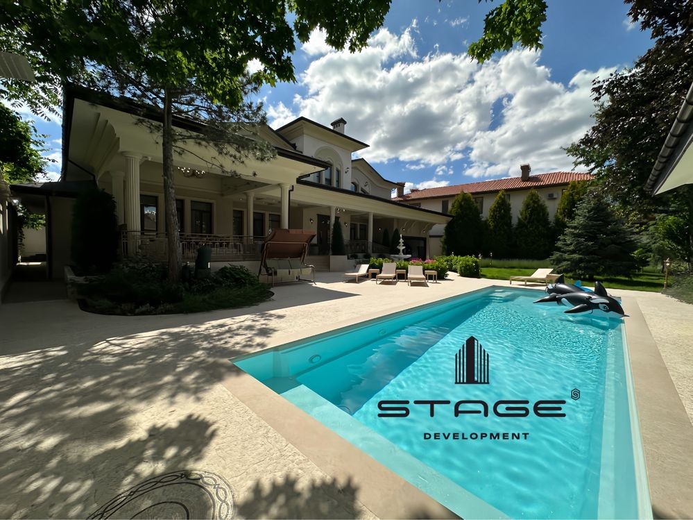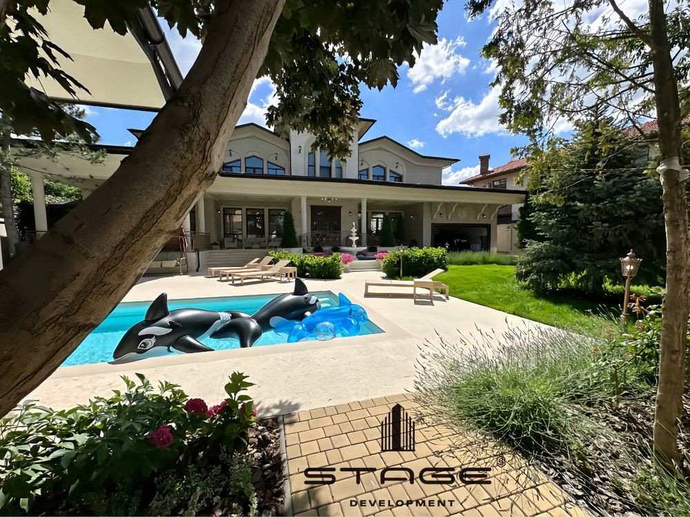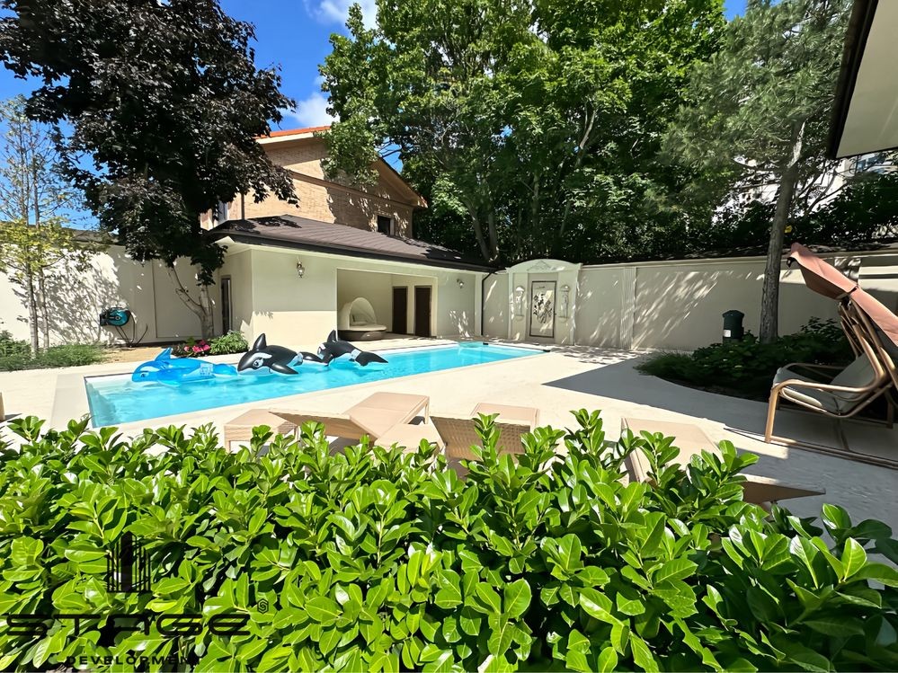 Участок с ландшафтным дизайном - 14 соток. Бассейн «Compass», рассчитан на круглогодичное использование, размер - 5х11 метров. Зона отдыха с шезлонгами, душем и санузлом, зона барбекю.