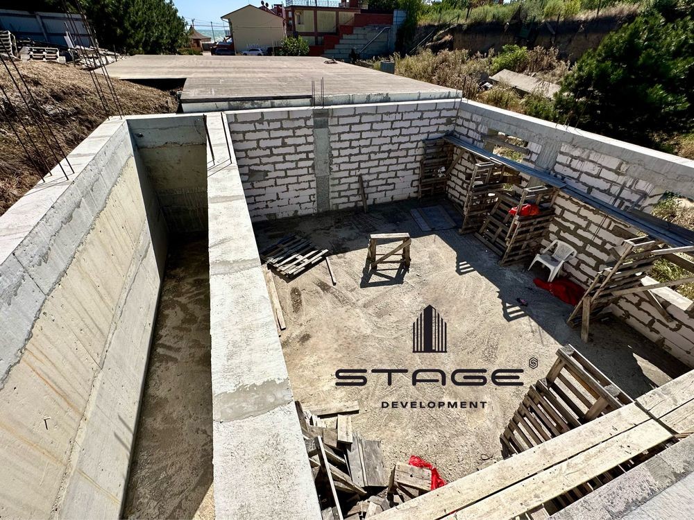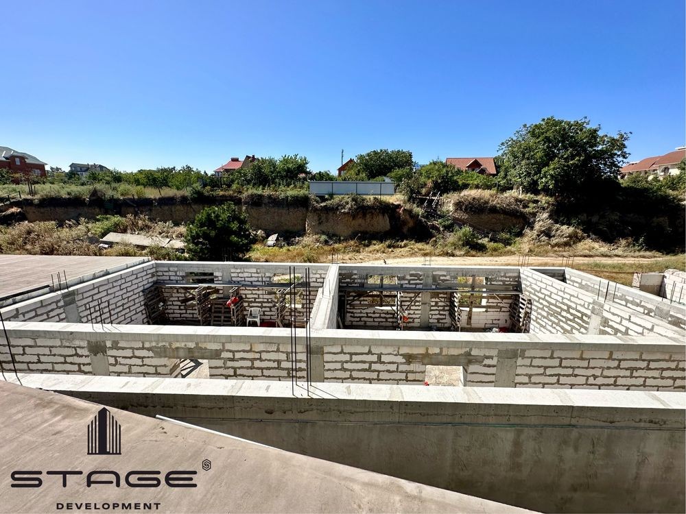 На участке 7.8 соток есть три строения. Первый дом под чистовую отделку - 202.5 метра. Второй дом планировался под Люкс номера с отдельный заездом - 171 метр (можно достроить ещё два этажа). Паркинг - 160.5 метров. Сделан прочный фундамент, выдержит ещё три этажа сверху, послойное армированное бетонирование и все строения также стоят на армированных бетонных плитах. Отопление проведено несколькими контурами, в первом доме уже установлены итальянские радиаторы. Вся вода в Яхт-клубе из Артезианской скважины.
