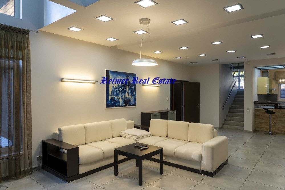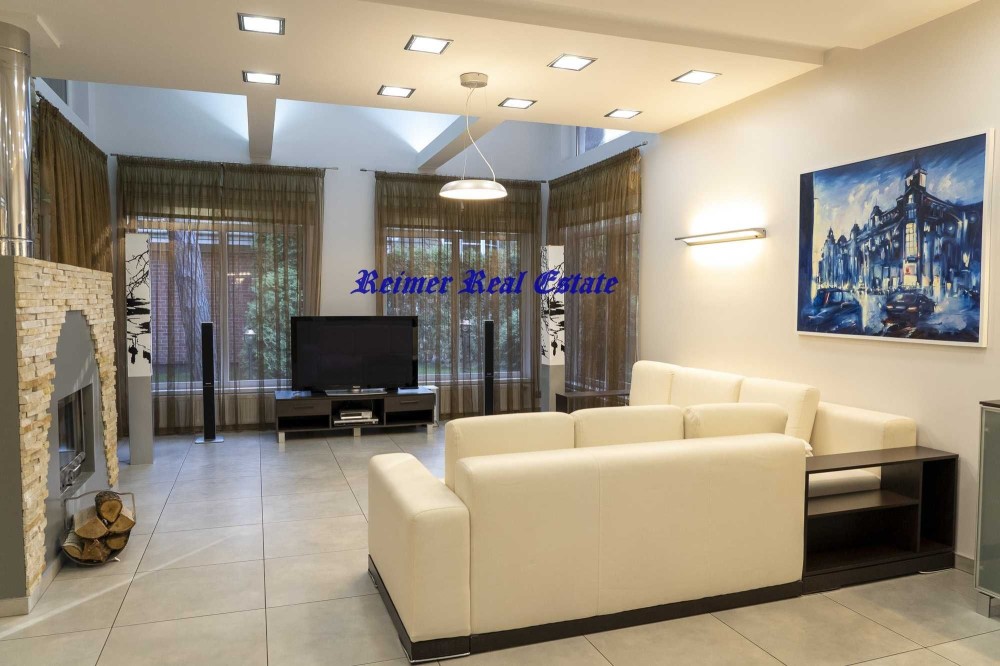 на 1-му поверсі простора вітальня- кухня з каміном з вихідом на террасу, де можна сім'єю завтракати або вечеряти на свіжому повітрі, СПА зона з сауною та бассейном 5 м з підігрівом, с/в, душ та спальня.