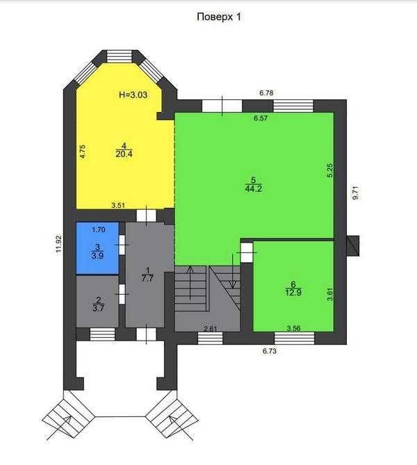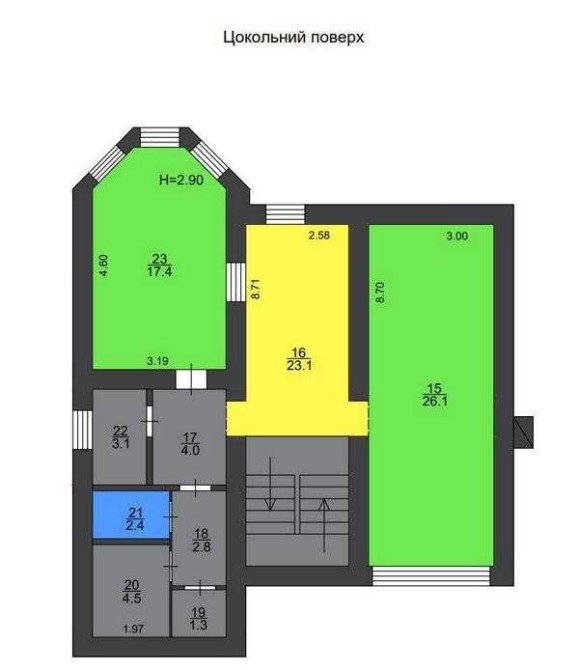 1. Цокольний поверх з бетонними перекриттями, можливість використання під бомбосховище