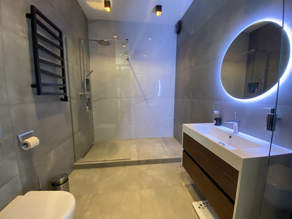 1-й рівень: кухня-вітальня 100м2 зі зручним зонуванням, гостьовий с/в, гардероб, підігрів полів, приточно-витяжна вентиляція, проектор;
