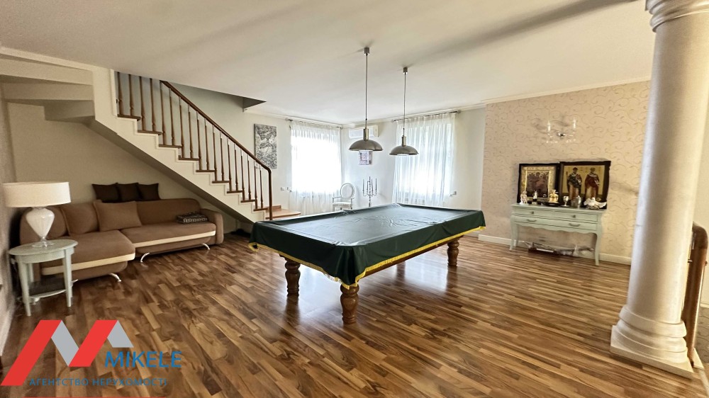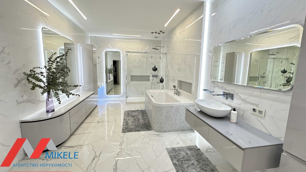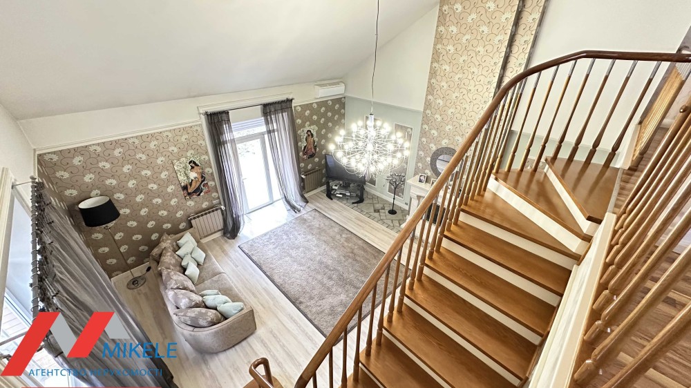 У будинку продумано кожну деталь: 4 світлі просторі кімнати, 3 санвузли, затишна вітальня з каміном, функціональна кухня, на територіі є окремий будинок 165 м2 з басейном та кімнатою відпочинку, щоб провести час із близькими у повному релаксі.