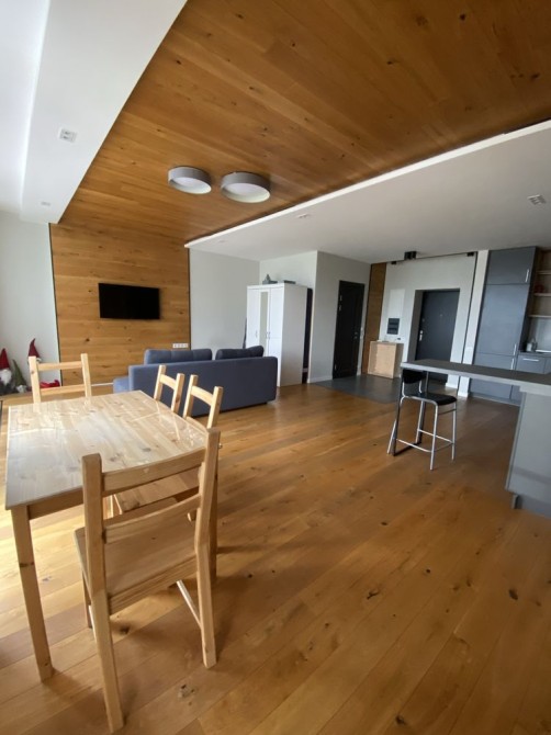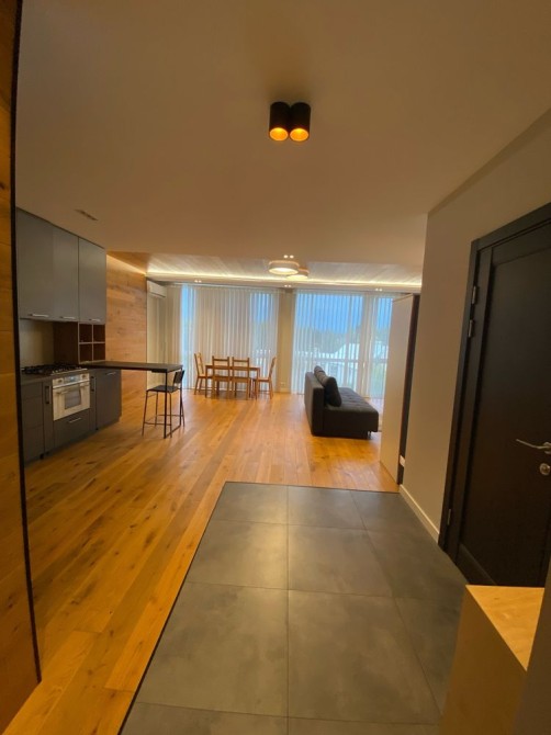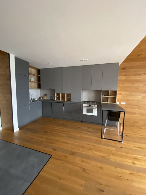 Квартира з дизайнерським ремонтом та використанням високоякісних матеріалів. На підлозі - натуральна деревяна дошка.