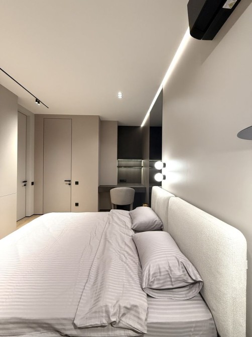 Планировка: кухня-гостиная, спальня, санузел, гардеробная, постирочная.
