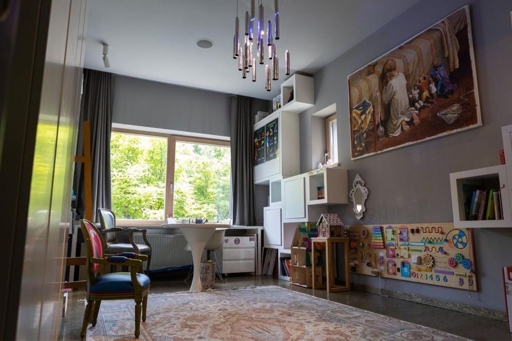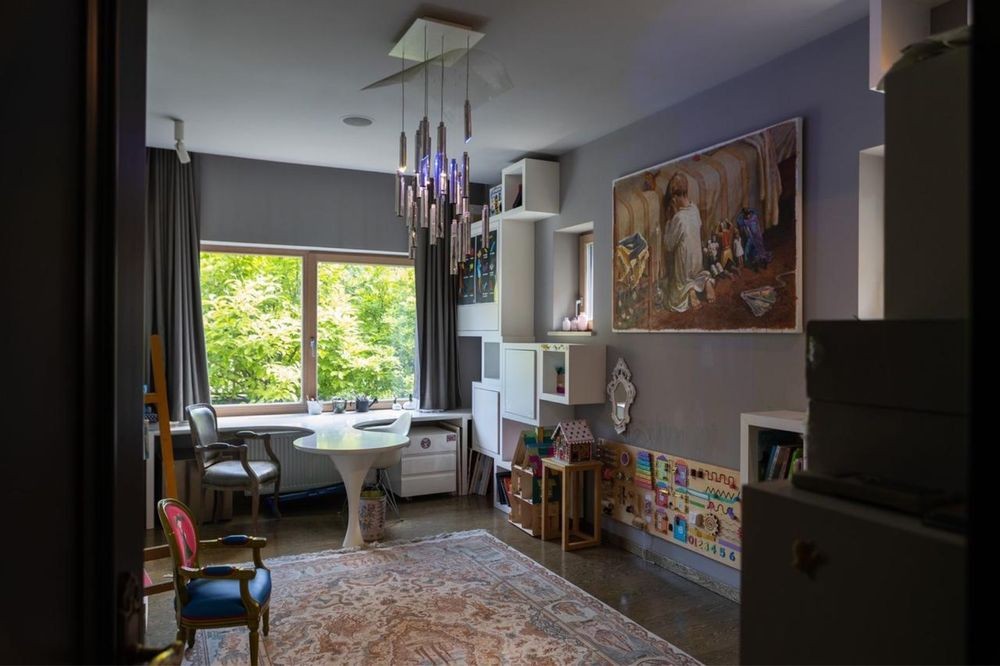 1 поверх: простора зона open space — кухня, їдальня та вітальня, що займає майже весь поверх. Також є дитяча ігрова кімната, ідеальна для сімей з дітьми.