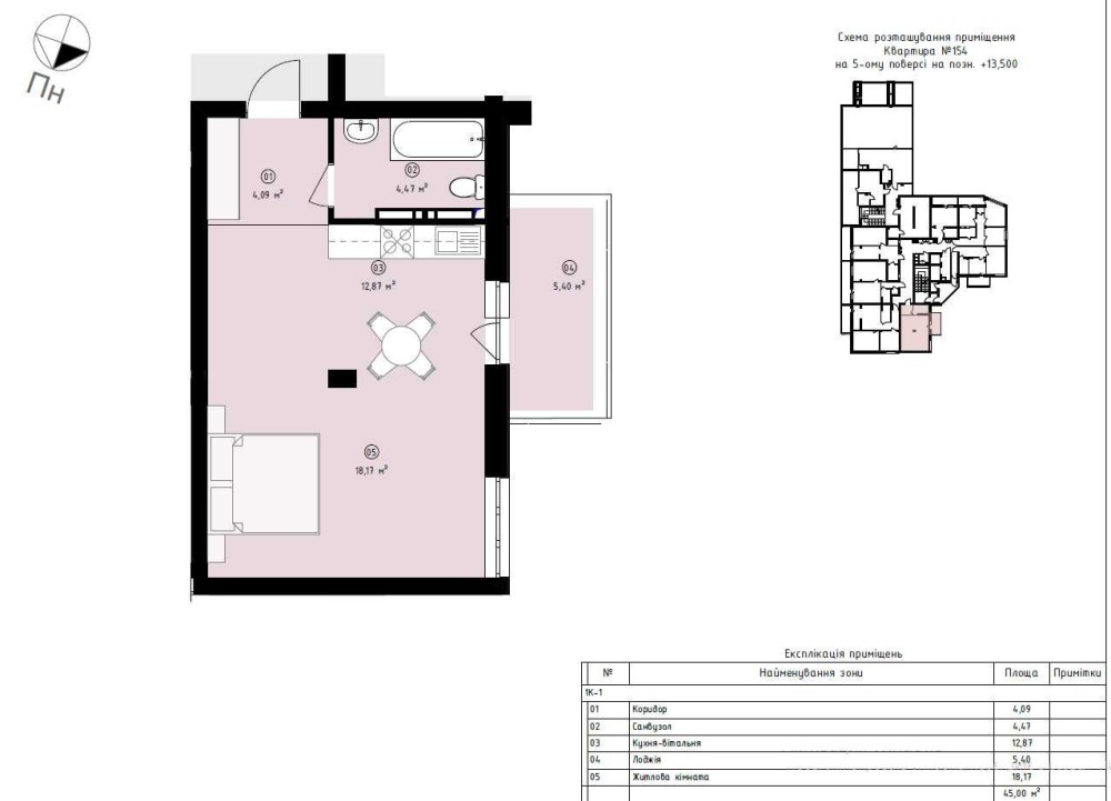 Монолітно-каркасний 20 поверховий будинок, простора квартира на низькому 5 поверсі площею 45 м кв. з панорамними вікнами та вільним плануванням. Квартира здається в наступному стані: стяжка підлоги, двокамерні склопакети з напиленням, панорамне скління лоджії, вхідні двері, лічильники тепла, води та електроенергії (двозонний), електрика вводиться тільки в квартиру (без розводки по квартирі), радіатори з нижнім підключенням, гідроізоляція в с/в, передбачені зовнішні місця для встановлення кондиціонерів. Введення будинку в експлуатацію 2 кв. 2028 року.