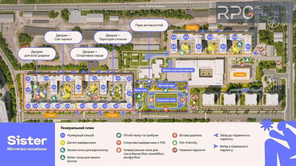 Власна школа та дитячий садочок прямо на території ЖК Sister — ваші діти завжди поруч, у безпеці та комфорті. Ніяких заторів, стресів та зайвих турбот. Сучасна освіта та професійна турбота — лише кілька кроків від вашого дому.