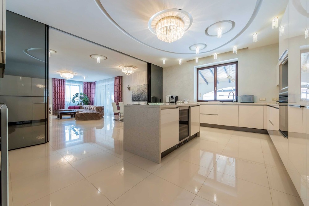 Іспанська плитка та сантехніка, італійські світильники. Всі меблі зроблені за індивідуальним замовленням. Кондиціювання. Водний підігрів підлоги.