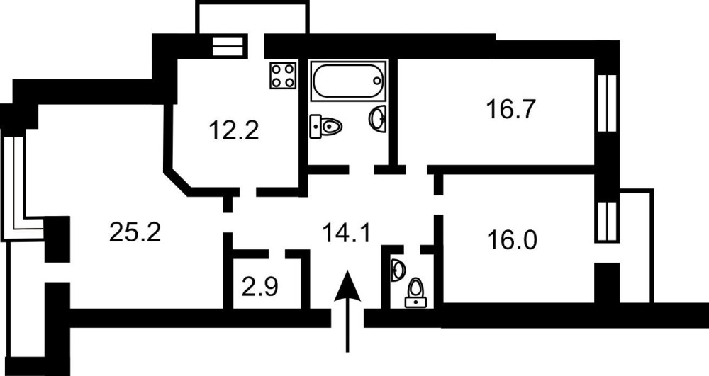• Трехкомнатная