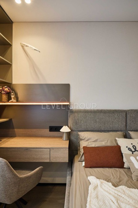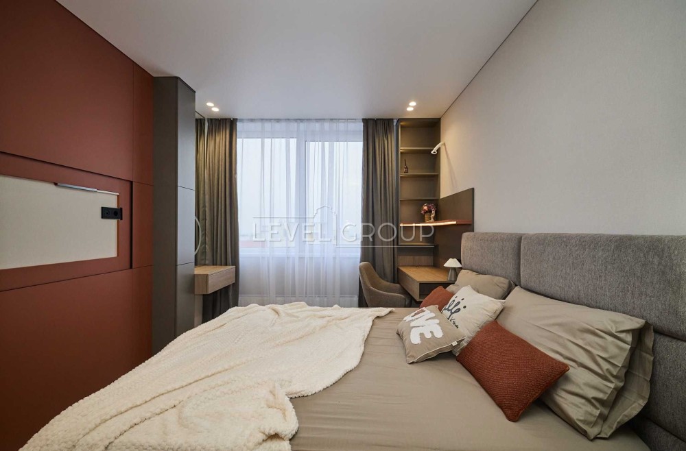 Планування передбачає кухню-вітальню, простору спальню з гардеробною, санвузол з душем, передпокій. В квартирі є все необхідне для комфортного життя. Техніка від провідних брендів: вбудований холодильник, морозильна камера та посудомийна машина, варильна поверхня, витяжка, бойлер, духова шафа, мікрохвильова піч та прально-сушильна машина від Samsung, встановлені виводи для кондиціонерів. Підігрів підлоги у передпокої та санвузлі. Квартира затишна та простора, багато місць для зберігання, чудовий панорамний вид з вікон.