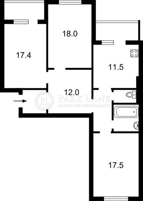• кімната — 17.5 м²