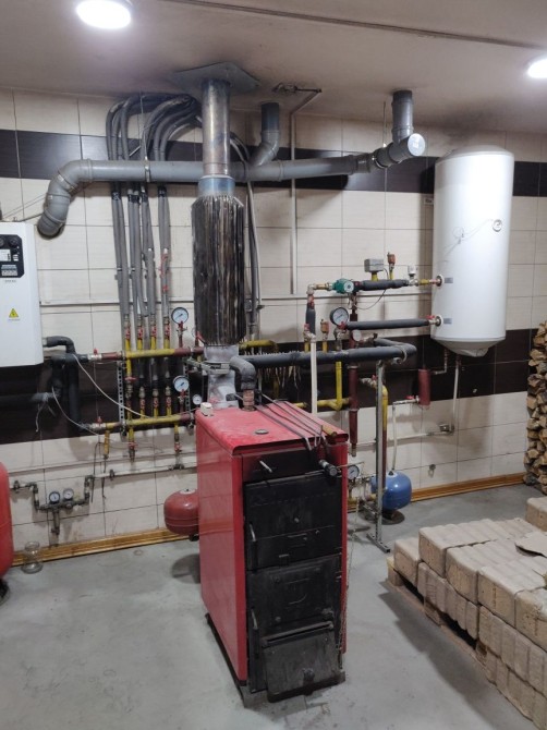 В будинку є повноцінне підвальне приміщення - топкова, де знаходиться двоконтурний котел та бойлер. Можна використовувати як бомбосховище. Також облаштоване місце для дров. Є комора для речей.