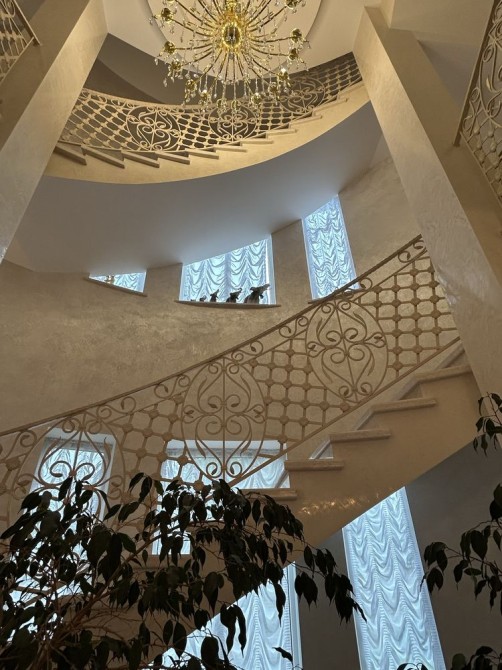 5 спалень , велика зала на першому та 4 поверхах , робочий кабінет;