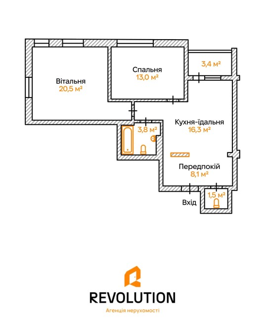 Площа: 66,6 м² (житлова 33,5 м²)