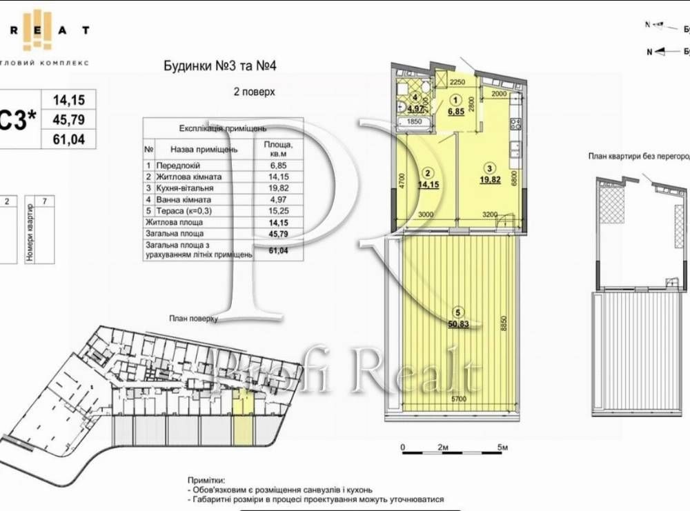Загальна площа 61, 58 кв.м, кухня-їдальня 20 кв.м. вихід на терасу 51 кв.м.), ванна кімната з с/вузлом 5 кв.м. на поверсі 5-ліфтів. Квартира зі зручним плануванням, висота стелі 2, 75 метра,