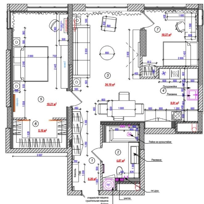 Спальня, кабінет, кухня вітальня