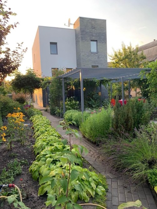 Ділянка: сад з молодими фруктовими деревами та великою кількістю квітів — створено для себе з душею.
